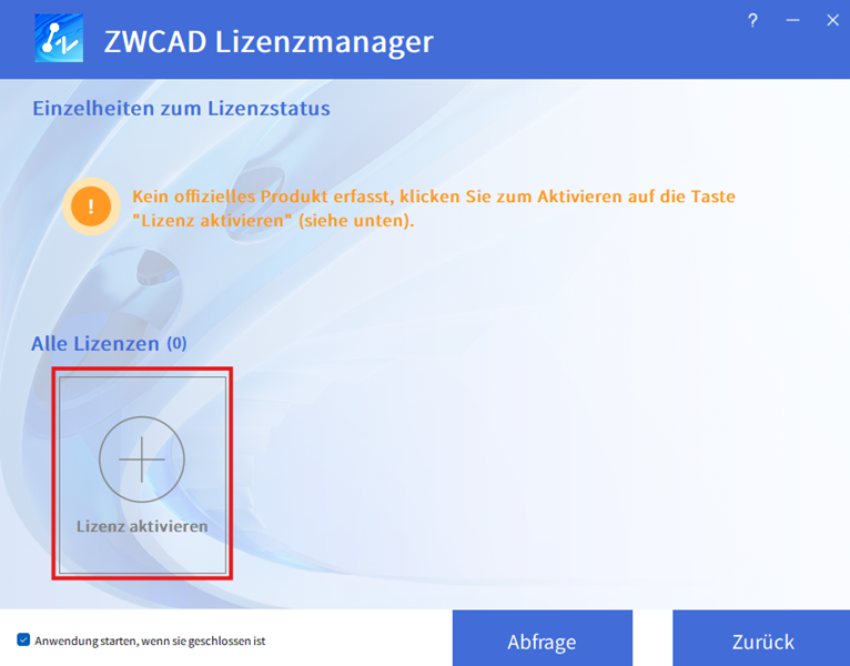 Öffnen Sie den Lizenz-Manager.